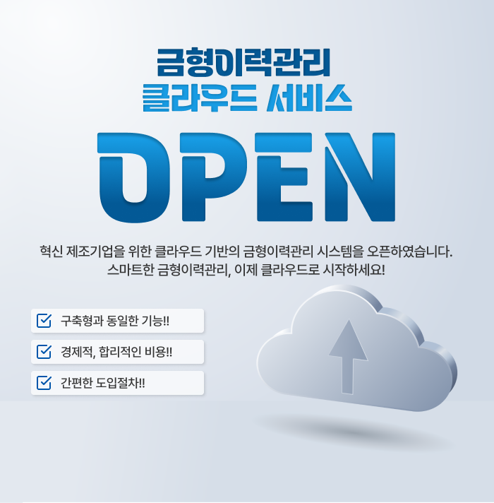 혁신 제조기업을 위한 클라우드 기반의 금형이력관리 시스템을 오픈하였습니다.
